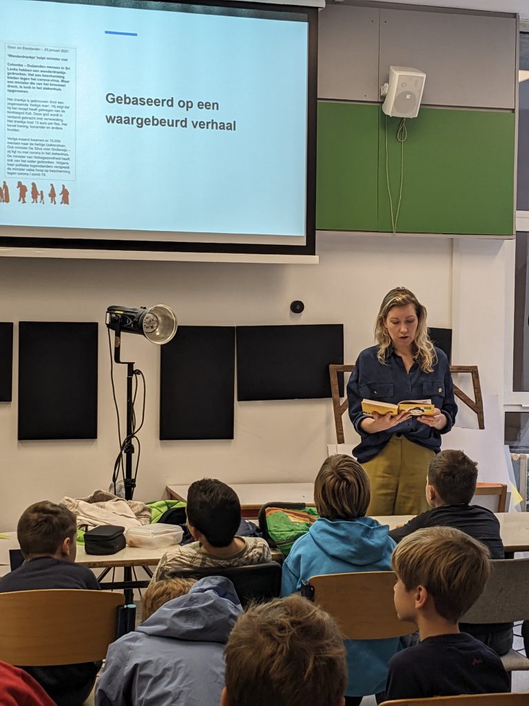 Ook mocht ik lesgeven aan alle leerlingen uit het primair onderwijs. Met de leerlingen uit groep 3-4 ging ik aan de slag met het onderwerp sprookjes. Wat een betrokkenheid van de leerlingen en wat hebben we met elkaar een prachtig sprookje geschreven. In groep 5-6 spraken we over perspectief. Boeken worden namelijk niet altijd alleen maar vanuit een mens geschreven, ook voorwerpen of dieren komen met regelmaat aan het woord. Wat doet dat voor een verhaal? Uiteindelijk schreven de leerlingen zelf een gedicht vanuit het perspectief van een voorwerp.